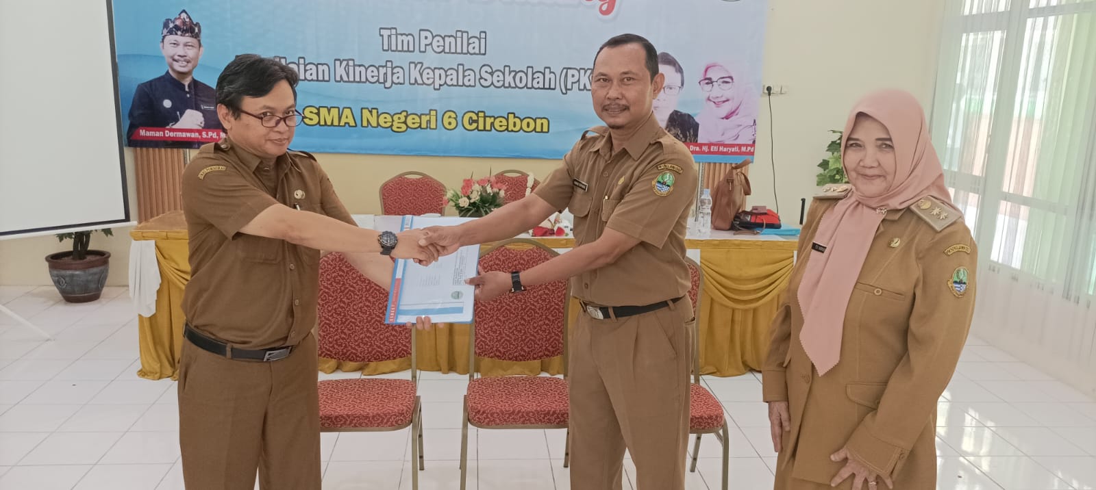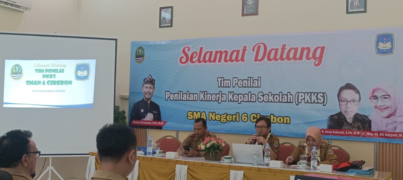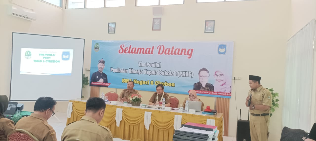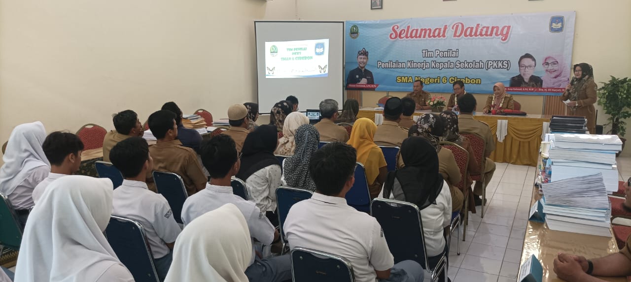 Cirebon (21/11) - Alhamdulillah kegiatan Penilaian Kinerja Kepala Sekolah atau yang biasa disingkat menjadi PKKS, telah selesai dilaksanakan. Kegiatan ini dihadiri oleh Dua orang Penilai, Kepala Sekolah, Wakil Kepala Sekolah, Guru, Orang Tua, Jajaran Tata Usaha dan perwakilan siswa-siswi SMAN 6 Cirebon. Untuk tim penilai yaitu Bapak H. Asep Suhendi, S.Pd., MM. dan Ibu Dra. Hj. Eti Haryati, M.Pd. Acara dimulai Pkl. 08.00 WIB dengan penyambutan oleh anak-anak ekskul tari tradisional dan ramah tamah bersama guru, staff TU, orang tua siswa dan perwakilan siswa-siswi.