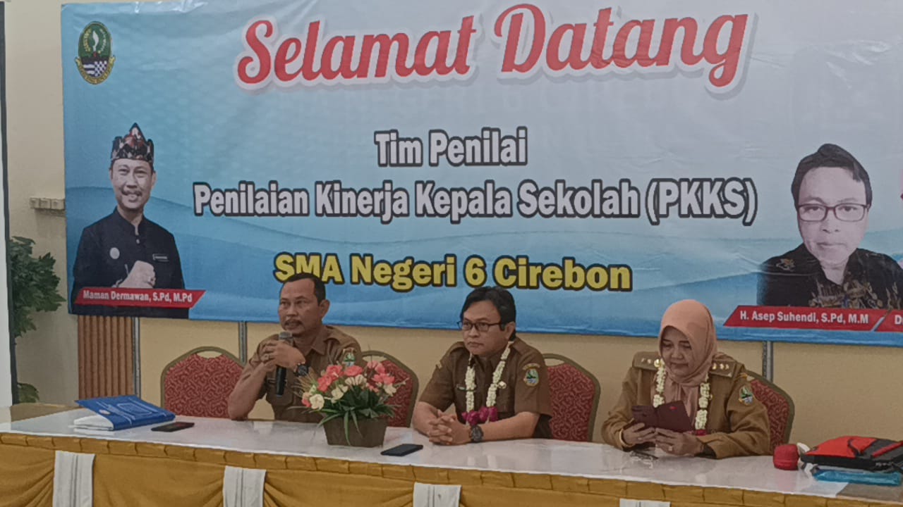 "Meski belum setahun, alhamdulillah sudah banyak prestasi yang diperoleh. Bukan hanya berprestasi dan juara, tapi juga menjadi Jawara. Dan saya mengucapkan terima kasih atas kolaborasi antara tim pengembang sekolah, guru, orang tua siswa, tata usaha dan yang lain. Sehingga dapat menjadi kesatuan untuk memajukan SMA Negeri 6. Di sekolah saya membentuk tim pengembang sekolah dengan membagi 2 yaitu tim pengembang kurikulum dan tim pengembang pembelajaran. Kami juga selalu menganalisa raport pendidikan dimana ada yang tidak real di sman 6 cirebon. Dimana kegotongroyongan menjadi sorotan, padahal disini sudah menjadi kewajiban bergotong royong. Upaya pemenuhan mutu lulusan, dan ada pemetaan kelas melanjutkan. Ada kelas pembentukan akademik, kelas atlit dan bimbingan UTBK. Untuk standar isi, karena kita baru masuk kurikulum merdeka level 2 maka dibagi menjadi 2. Peningkatan standar proses dimana dahulu Guru sebagai satu-satunya sumber, sekarang murid adalah sumber untuk mencari segala informasi. Pengembangan sarpras, alhamdulillah sman 6 secara fisik perawatannya sangat rutin. Sehingga hasil analisa PUPR, ada 10 ruang yang akan direhab. Alhamdulillah SMAN 6 Mendapatkan bantuan kinerja, yaitu dalam bentuk IHT bimbingan peningkatan mutu kepada guru². Kemudian bantuan meubeuleur, lab, dan digital interaktif." ujar beliau.