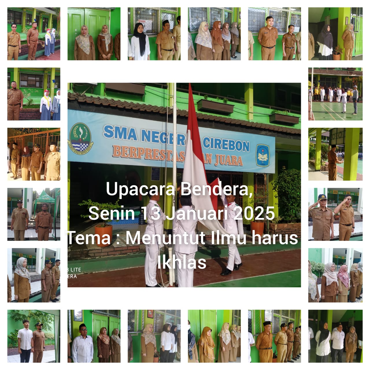 Cirebon (06/01) - Pada Kegiatan Upacara Bendera hari Senin tanggal 13 Januari 2025 dimulai Pkl. 07.15 WIB dengan mempersiapkan seluruh peserta upacara. Dalam kegiatan upacara hari ini, sangat istimewa. Karena turut pula dihadiri oleh Beberapa perwakilan Alumni SMAN 6 Cirebon yang telah diterima di Perguruan Tinggi Negeri maupun Swasta Favorit guna memberikan motivasi kepada adik-adik kelasnya. Dan yang bertindak sebagai Pembina Upacara adalah Bapak H. Akbar Maulana, M.A. selaku Wakil Kepala Sekolah Bidang Humas SMAN 6 Cirebon. Dalam sambutannnya beliau menyampaikan tentang Keikhlasan dalam menuntut ilmu. Sebelum menyampaikan hal tersebut, pembina upacara menyampaikan banyak terima kasih kepada para petugas dan peserta yang sudah melaksanakan kegiatan upacara dengan tanggung jawab. "Bismillah.. Yang kami hormati Bapak Kepala Sekolah, yang kami hormati Wakil Kepala Sekolah SMAN 6 cirebon, yang saya hormati guru, kepala arsiparis dan TU dan anak-anakku yang bapak cintai. Assalammualaikum wr wb. Puji syukur kita panjatkan kehadirat Allah SWT, atas segala nikmatnya. Tidak panjang lebar yang bapak sampaikan, pada minggu ini ada agenda istimewa. Yaitu agenda univ day, adalah agenda kerjasama antara alumni dan sekolah. Mudah-mudahan anak kelas XII dapat menganbil manfaatnya dan kelas X dan XI dapat menjadi motivasi. Berikutnya kita sebagai hamba Allah ada hal yang harus kita penuhi yaitu kewajiban syariat. Untuk menjalankan hal tersebut, kita perlu ilmu. Yang harus kita perhatikan dalam menuntut ilmu, yang pertama adalah niat untuk beribadah. Bukan niat ingin paling pintar,paling hebat, paling wow. Tapi niatkan dalam menuntut ilmu adalah ikhlas karena Allah SWT. Ketika sudah diniatkan ikhlas karna Allah SWT, maka tidak akan ada mood-moodan. Lalu apabila kita sudah ikhlas, menuntut ilmu itu apakah untuk kepentingan pribadi atau untuk kepentingan orang lain. ", Ujarnya.