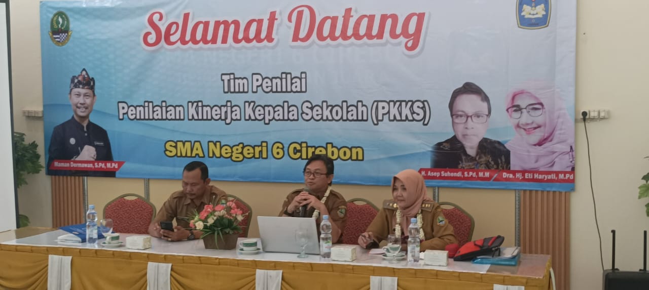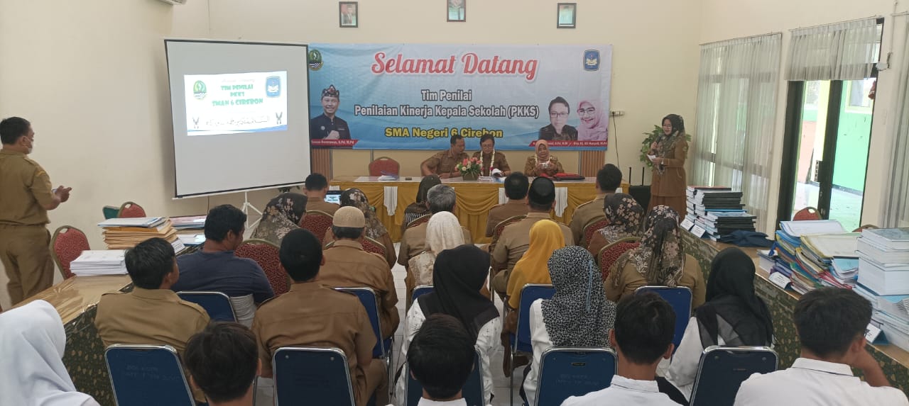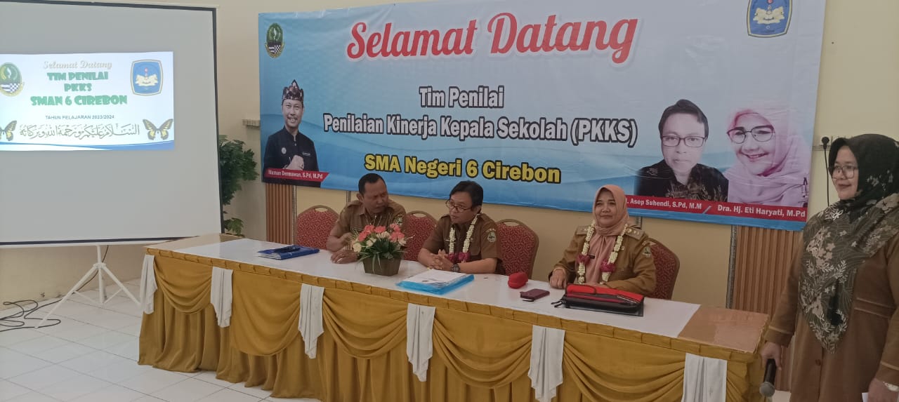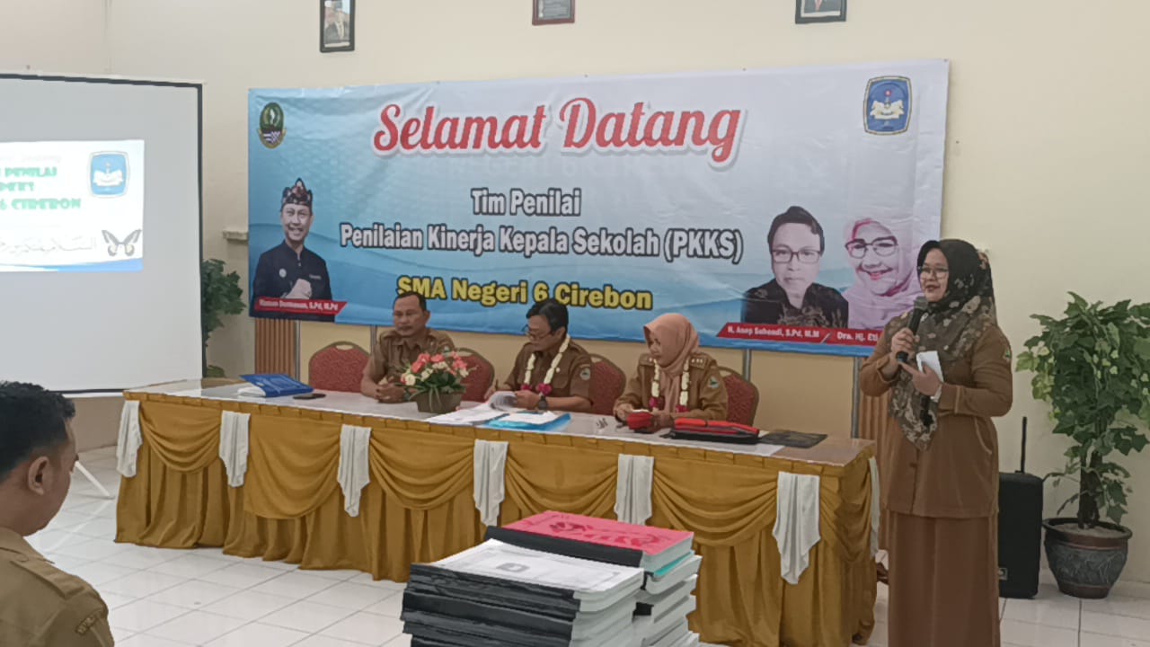 Cirebon (21/11) - Alhamdulillah kegiatan Penilaian Kinerja Kepala Sekolah atau yang biasa disingkat menjadi PKKS, telah selesai dilaksanakan. Kegiatan ini dihadiri oleh Dua orang Penilai, Kepala Sekolah, Wakil Kepala Sekolah, Guru, Orang Tua, Jajaran Tata Usaha dan perwakilan siswa-siswi SMAN 6 Cirebon. Untuk tim penilai yaitu Bapak H. Asep Suhendi, S.Pd., MM. dan Ibu Dra. Hj. Eti Haryati, M.Pd. Acara dimulai Pkl. 08.00 WIB dengan penyambutan oleh anak-anak ekskul tari tradisional dan ramah tamah bersama guru, staff TU, orang tua siswa dan perwakilan siswa-siswi.